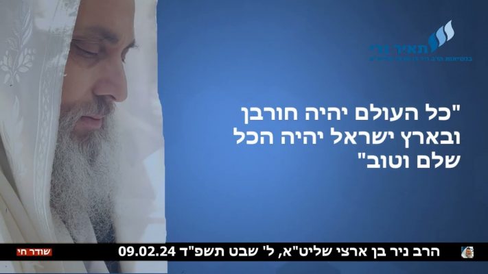 הרב ניר בן ארצי שליט”א: “כל העולם יהיה חורבן ובארץ ישראל יהיה הכל שלם וטוב”