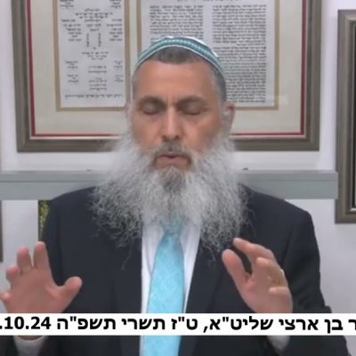 “שבורא עולם לא יפגע עוד … שלא יפגעו עוד חיילי צבא הגנה לישראל שיהיו מוגנים ושמורים. תרחם עליהם הקדוש ברוך הוא, על כל חיילי צבא ההגנה לישראל שלא יפגע אף חייל צה”ל עוד. יתגלה מלך המשיח ברחמים עכשיו בפרהסיה, בזמן הקרוב הזה. תהיה תחיית המתים של כל החיילים שנהרגו וכל החיילים הפצועים יחזרו לרפואה שלמה, בריאות טובה לאדם רגיל. ככה אמר הקדוש ברוך הוא והוא נשבע וחתם בשמיים, בכל הרקיעים וככה יהיה בדיוק. לא אומר אות אחת יותר … פה, למרות שיש הרבה קודים בדיבור אבל אין אות אחת יותר, פה. גם מה שאני אומר עכשיו, זה לא מיותר! שיהיה חג סוכות … חול המועד, חג סוכות טוב ומוגן לכל היהודים ממטולה ועד אילת, כל קצוות הארץ שיהיו מוגנים ושמורים. תכנסו לסוכה מחייכים ושמחים, תבקשו על החטופים, תהילים, תהילים בסוכה לחטופים. לא הפגנות! הקדוש ברוך הוא לא אוהב כוח, הוא לא אוהב שמכופפים אותו בכוח, כי לא יכולים, רק פה! פה של היהודים, יש בו כוחות עצומים, תפילה ובקשות או להודות להשם ולשבח את השם ולבקש בקשות. לכו בדרך הנעימה והטובה הזאת, תראו ניסים ונפלאות עם החטופים, כמה שיש מה נשאר … גם את הגופות יביאו. תהיה שנה טובה מאוד! שחיילי צבא ההגנה לישראל יראו את האויב ושהאויב לא יראה אותם. שנה טובה ומבורכת, כתיבה וגמר חתימה טובה, פתקא טבא לכולם! יברכך ה’ וישמרך, יאר ה’ פניו אליך ויחנך, ישא ה’ פניו אלייך וישם לך שלום ושמו את שמי על בני ישראל ואני אברכם, ה’ עוז לעמו ייתן, ה’ יברך את עמו בשלום!”