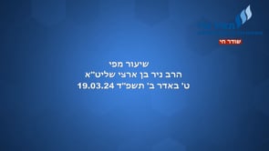 שיעור מפי הרב ניר בן ארצי שליט”א ט’ באדר ב’ תשפ”ד 19.03.24