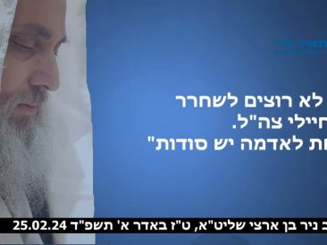 הרב ניר בן ארצי שליט”א: “העולם לא יכול להתקיים במצב של היום”