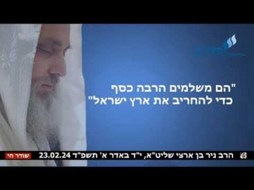 הרב ניר בן ארצי שליט”א: “הם משלמים הרבה כסף כדי להחריב את ארץ ישראל” הם משלמים הרבה כסף כדי להחריב את ארץ ישראל” “כל מה שקורה בארץ ישראל, אומר הקדוש ברוך הוא, להתעורר, להתעורר ולא להאמין לאף אחד. לבדוק טוב, טוב כל נושא שמחליטים בממשלה ובכל מקום אחר. לא להיות פזיזים ולא להיות מושפעים מההפגנות. עכשיו מדינת ישראל עם חיים ומוות בארץ ישראל. לא להיות מושפעים מההפגנות ולא מאף מדינה אחרת. כל ההפגנות האלה זה כסף, רק בגלל כסף וגויים, כווית וקטאר וסעודיה שמשלמים הרבה כסף כדי...
