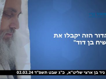 הרב ניר בן ארצי שליט”א : “הדור הזה יקבלו את משיח בן דוד” הדור הזה יקבלו את משיח בן דוד “בורא עולם אומר לעם ישראל,עם ישראל תמיד ידו עליונה, אל דאגה ילדיי עם ישראל, עם ישראל תמיד, תהיה ידו עליונה והדור הזה יקבלו את משיח צידקנו בן דוד.כל דבר טוב נקנה ביסורין.והקדוש-ברוך-הוא רוצה שיהיה טוב לעם ישראל, רוצה להושיט להם את המתנה הכי יקרה שתועיל לעם ישראל לעולמים וזה משיח בן דוד. היהודים חיים בעירפול ויבוא יום וידרכו בקרקע ויבינו שאין כמו כוחו של הקדוש-ברוך-הוא.כי הקדוש-ברוך-הוא...