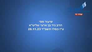 שיעור מפי הרב ניר בן ארצי שליט”א ט”ו כסלו תשפ”ד 28.11.23 מתוך דברי הרב ניר בן ארצי שליט”א (בוקר של יום שלישי 28.11.23): בורא עולם אומר…….. לכל היהודים בעולם ולכל העולם כולו, אף אחד לא יכול להפחיד את בורא עולם, ואף אחד לא יכול לעצור את המהלכים של הקב״ה! אנשים נכנסים לגאווה וחושבים שהם יכולים לעשות הכל, הבעיה אצל בני האדם שכאשר הם מרגישים בריאים ושלמים, הם מרגישים גיבורים גדולים, שניה אחריי זה הוא חולה, פתאום מתחנן לבורא עולם. בורא עולם שונא את הגאווה…….. אדם כשהוא בריא...