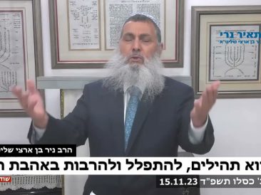 הרב ניר בן ארצי שליט”א: “תפרסמו את זה לכולם אם תהיה אהבת חינם לא תפתח מלחמה בצפון חיזבאללה מתגרה כדי שיבואו להילחם אתו ויעזבו את עזה בניינים של 10 קומות ייפלו”