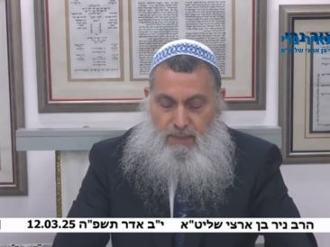 הרב ניר בן ארצי שליט”א: “לב מלך ביד ה’, כל מי שהולך נגד בנימין נתניהו הוא נגד בורא עולם” “בנימין נתניהו, זה בחר אותו הקדוש ברוך הוא לזמן שלנו פה עכשיו, תבינו את זה פעם אחת לתמיד! הקדוש ברוך הוא נתן לו כוח להיות ראש ממשלה.כמו שהכביד את לב פרעה, הוא מחיה את לב בנימין נתניהו.כמו שמכביד את לב הפרסי הזה … חומני … נחמני, חומני באיראן, מכביד את ליבו … כך הוא יכול גם לא להכביד את ליבו. כמו שמכביד את ליבו של טראמפ או מחליש את ליבו של טראמפ. הוא מכביד ליבו של פוטין או מחליש...