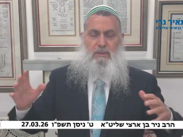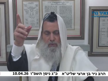 הרב ניר בן ארצי שליט”א: “מהיום (03.04.26) הקב”ה לוקח את הבחירה החופשית בעניין הזה” ״והיום בורא עולם לוקח את המנהיגות בידיים במאת אחוזים.מהיום לוקח את הבחירה החופשית של כל אדם ואדם, בעניין מדינת ישראל, בעניין כלל ישראל, לא בעניין שרוצה לאכול תפוח או אגס, שיאכל מה שהוא רוצה אגס תפוח או שחרובים. זה הקב״ה לא שולט באדם מה הוא רוצה לעשות. הקב״ה שולט בכלל העולם, בכלל מדינת ישראל, לכיוון הטוב של מדינת ישראל- לקדושה והטהרה והתורה והדת והיהדות, ועל ממשלת ישראל ועל הצבא,וגם על בית...
